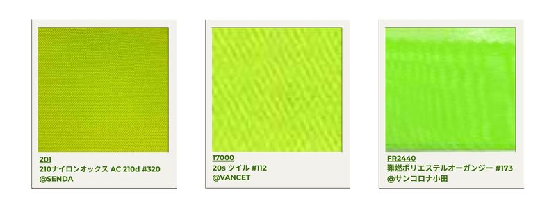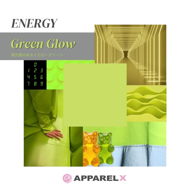 Avec le retour en force des tendances Y2K et Heisei, ce jaune-vert possède une luminosité évoquant le néon ou la phosphorescence. Son éclat est sublimé par des matières légères comme le nylon et le taffetas, ou par des tissus brillants. Associé à des tons sombres et sobres, il peut devenir une couleur d'accent saisissante pour une tenue automne/hiver plus discrète.