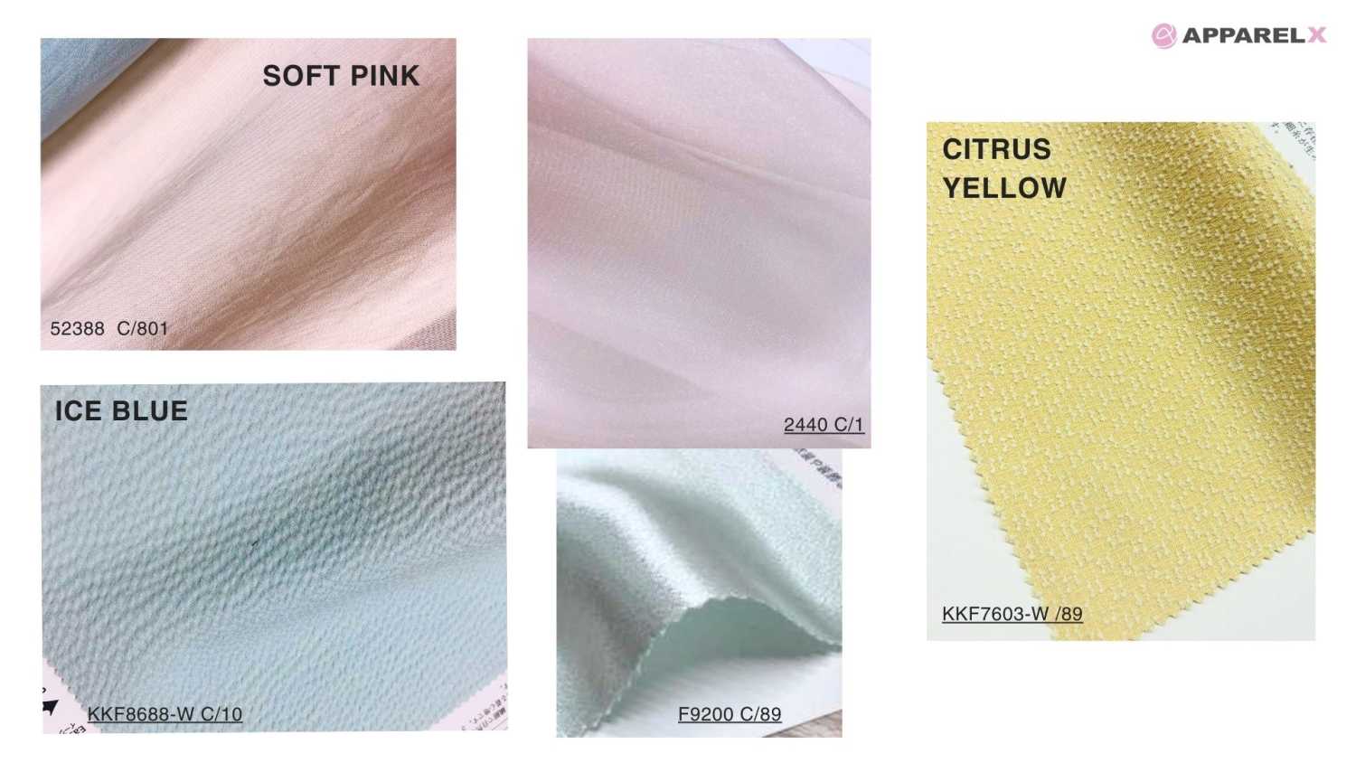 Nous avons compilé une perspective ApparelX unique sur les tendances de couleurs et les matières populaires pour la saison printemps/été.
