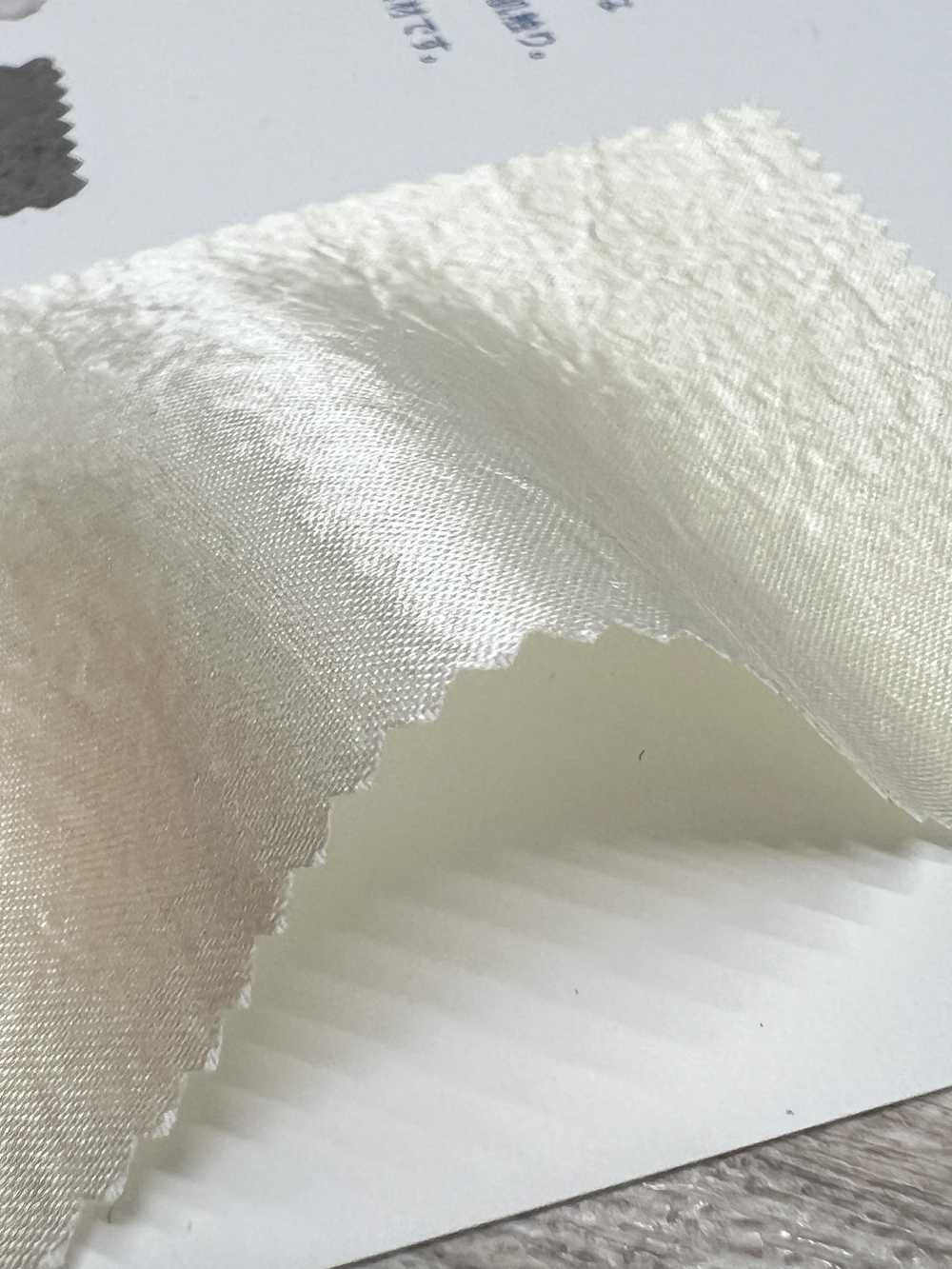 Cet organza en mélange de nylon présente une surface naturellement froissée et un toucher doux et souple.