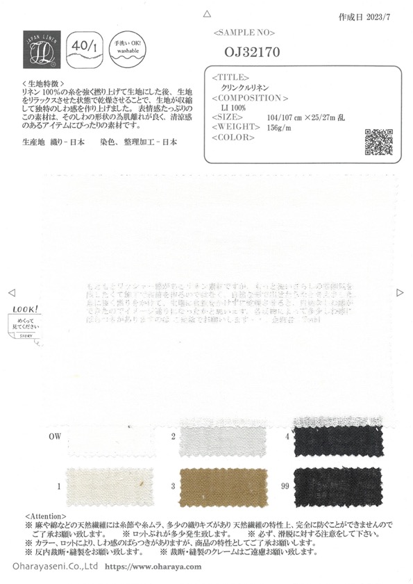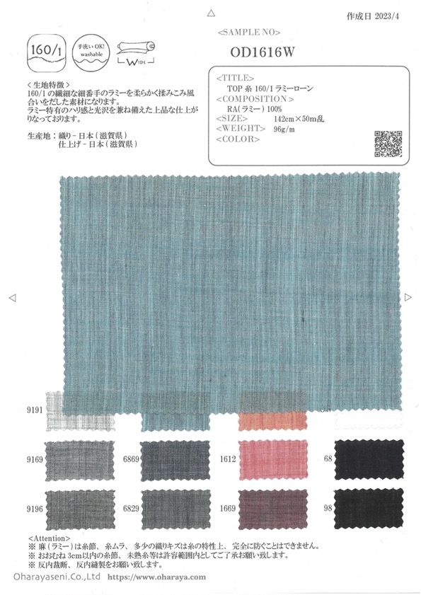 Le jersey brut est fabriqué à partir de papier washi, et le tissu lui-même est léger, ce qui le rend idéal pour les articles coupés-cousus du printemps et de l'été.