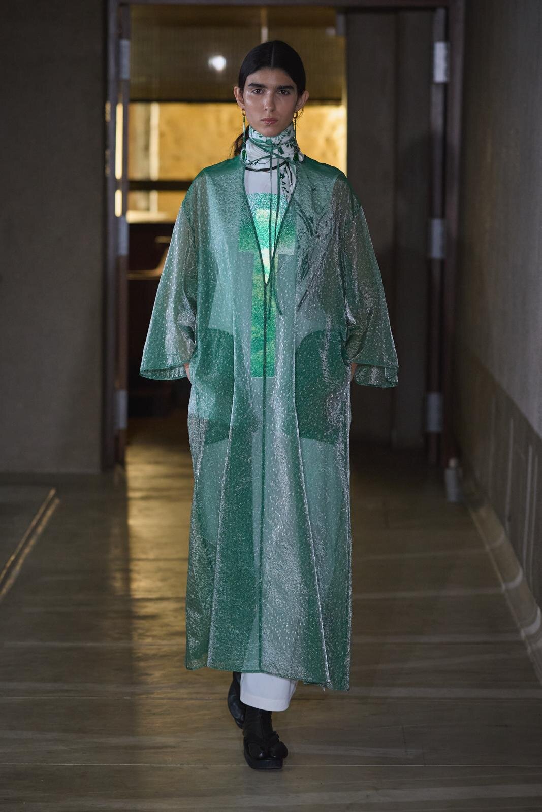 Bien que la marque propose généralement de nombreux articles évoquant les plantes et la nature, les foulards et les sous-vêtements pouvant servir de pièces d'accent, ainsi que les vêtements d'extérieur transparents et volumineux à motifs botaniques, attirent particulièrement le regard.