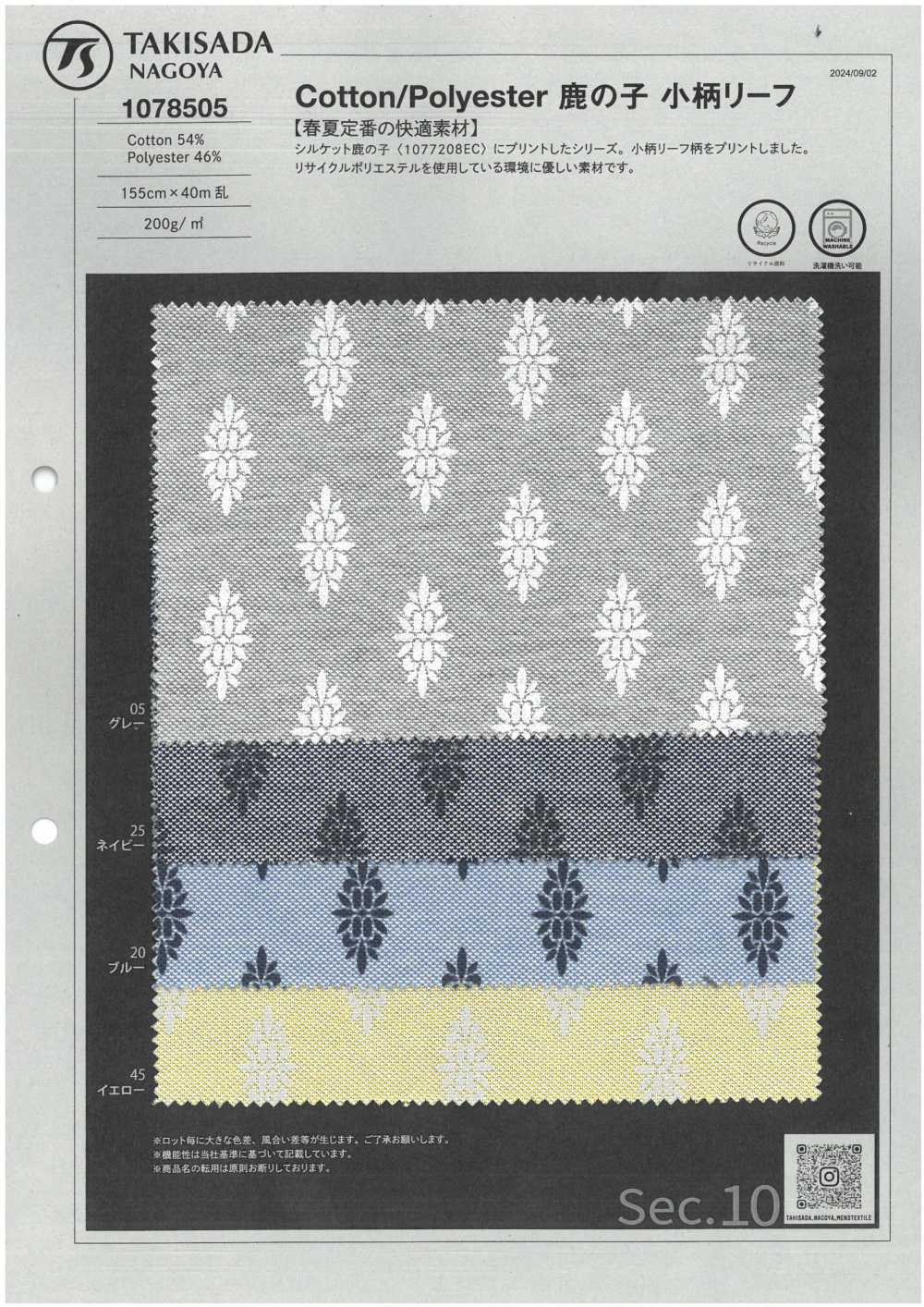 Ce textile en coton et lin est tissé sur un métier Jacquard. Le motif est réalisé grâce à de multiples tissages, et le processus de finition au tambour lui confère une texture douce, duveteuse et d'aspect vintage. Il est idéal pour des articles haut de gamme tels que chemises et blouses, ainsi que pour divers articles de décoration intérieure et vêtements mettant en valeur le motif. Deux motifs sont disponibles : le damas, orné de motifs végétaux, et le botanique, mettant en scène diverses fleurs. Il s'agit d'une création originale d' Oharayaseni , à la fois sophistiquée et idéale pour la confection de vêtements d'exception.