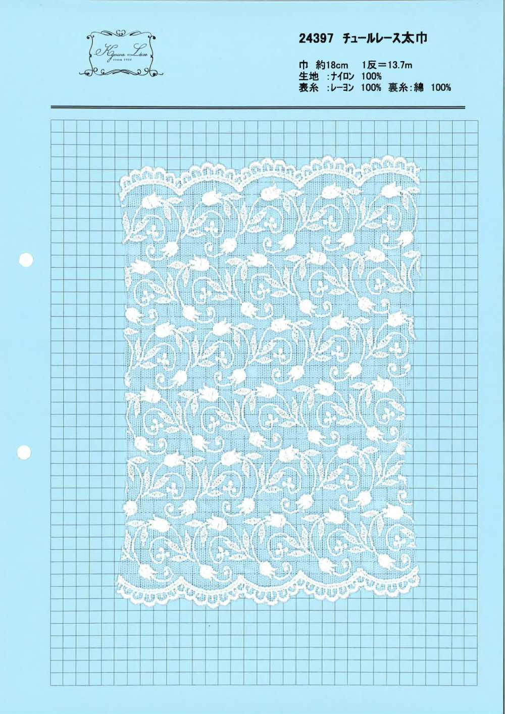 24397 Dentelle de tulle large, motif floral