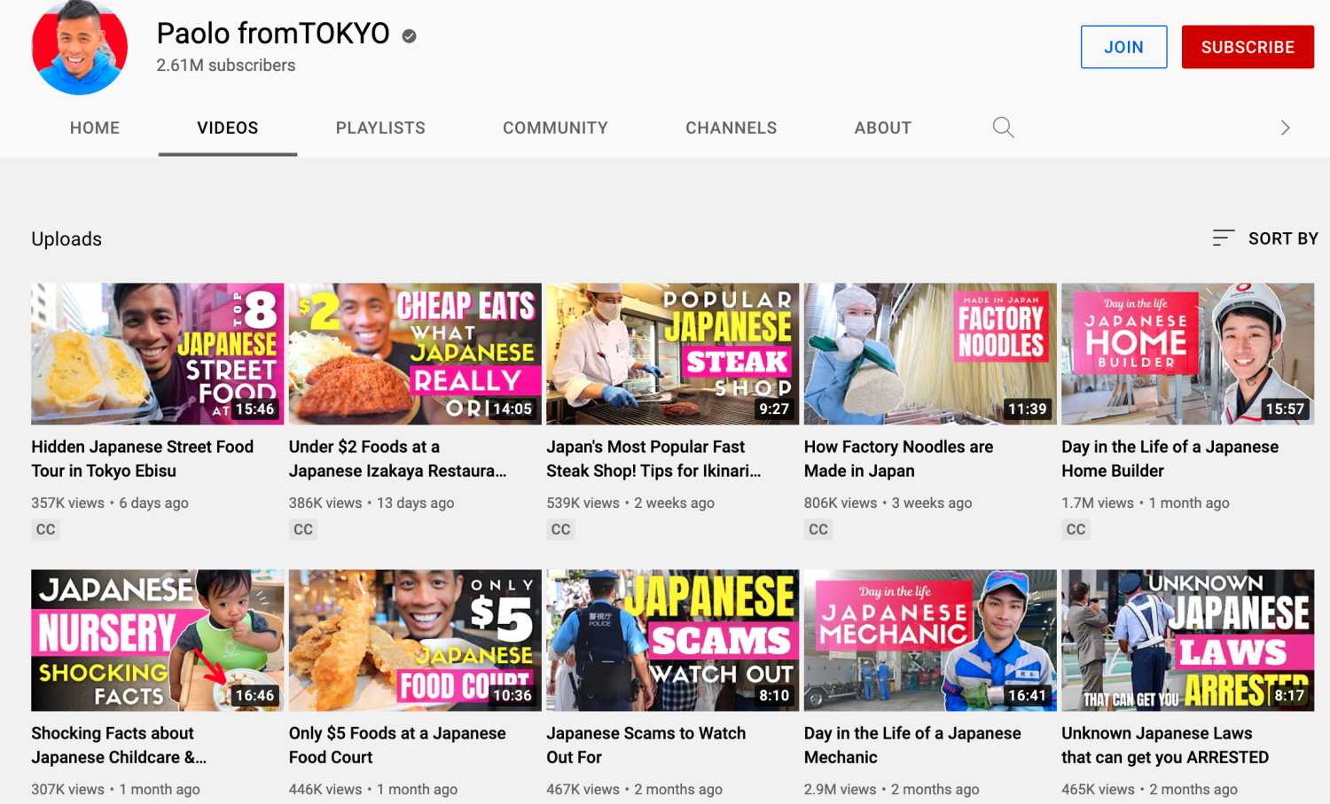 Quand j'étais au Vietnam, l'une de mes activités préférées était de regarder des vidéos YouTube sur la vie et les voyages au Japon. Beaucoup de Youtubeurs que je suivais à l’époque ne sont plus aussi actifs qu’avant, mais de nouveaux Youtubeurs émergent et proposent un excellent contenu.