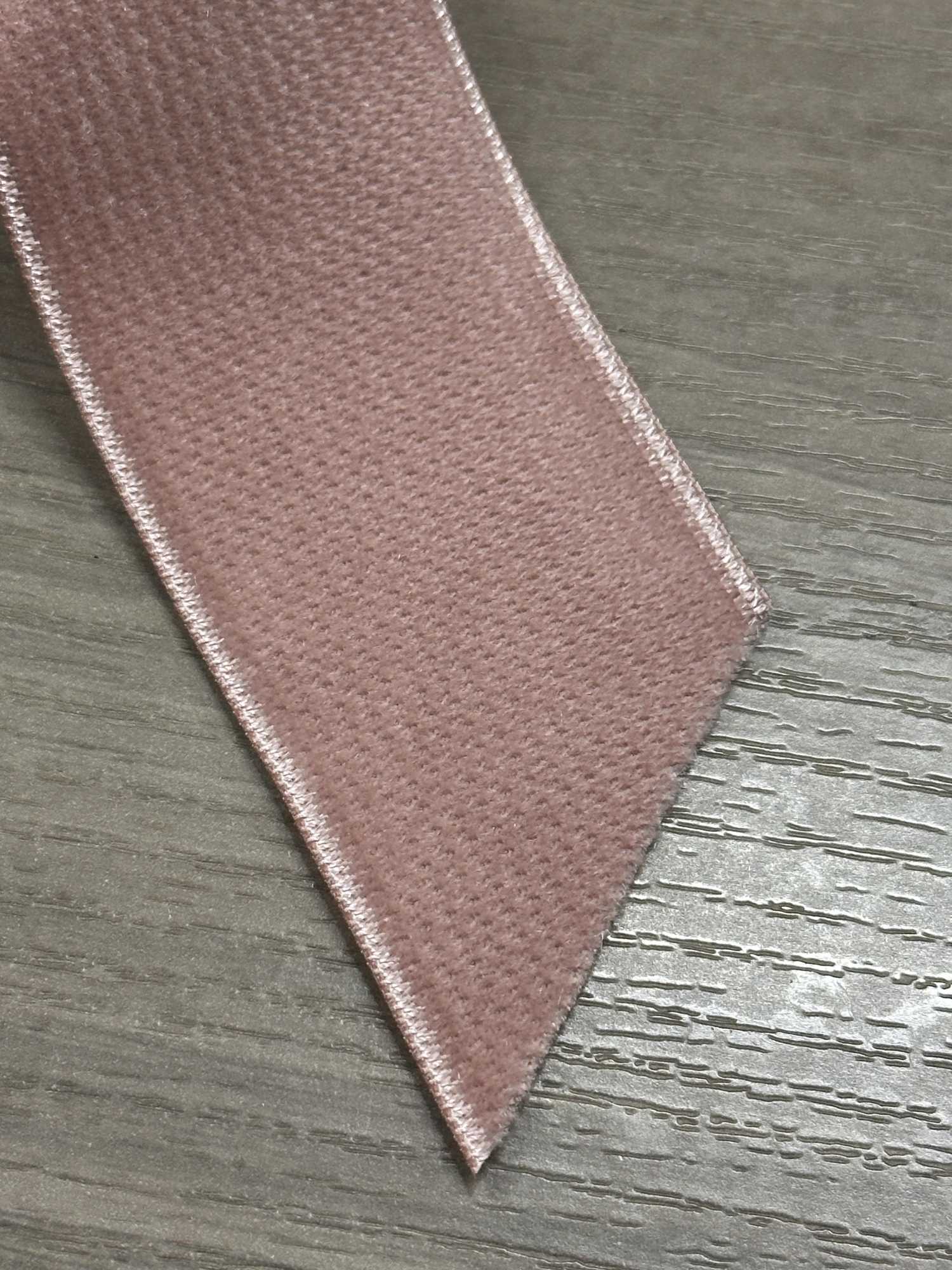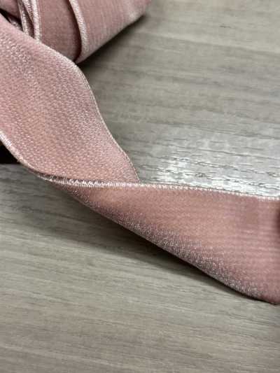 Les deux faces sont en velours, ce qui confère à ce ruban l'épaisseur idéale et une forte présence. Utilisé pour marquer la taille d'une robe, comme bretelles ou comme rubans décoratifs, il serait du plus bel effet, créant un look classique ! Sa texture mate permet bien sûr de l'utiliser aussi pour des occasions décontractées. Je suis ravie lorsque j'associe la couleur rose de C/#20 à la texture de ce velours.