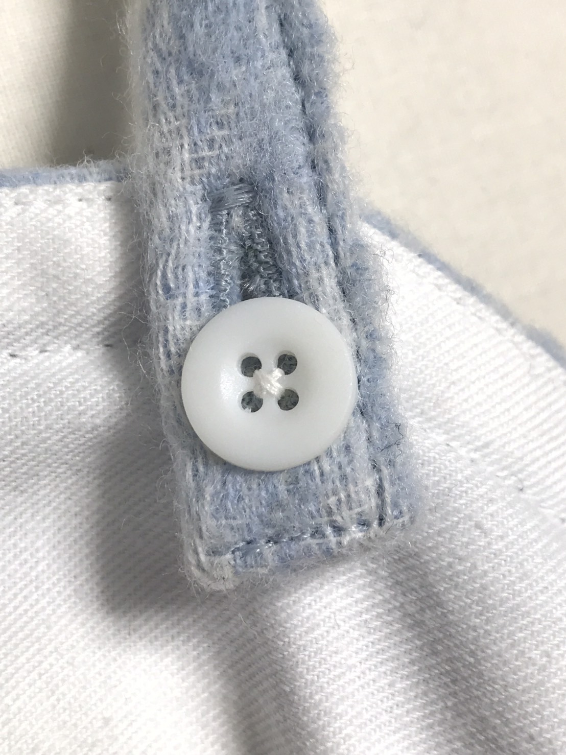 Le bouton blanc semble jaune. On dirait que les couleurs sont différentes même si elles ont le même numéro de couleur selon la taille.