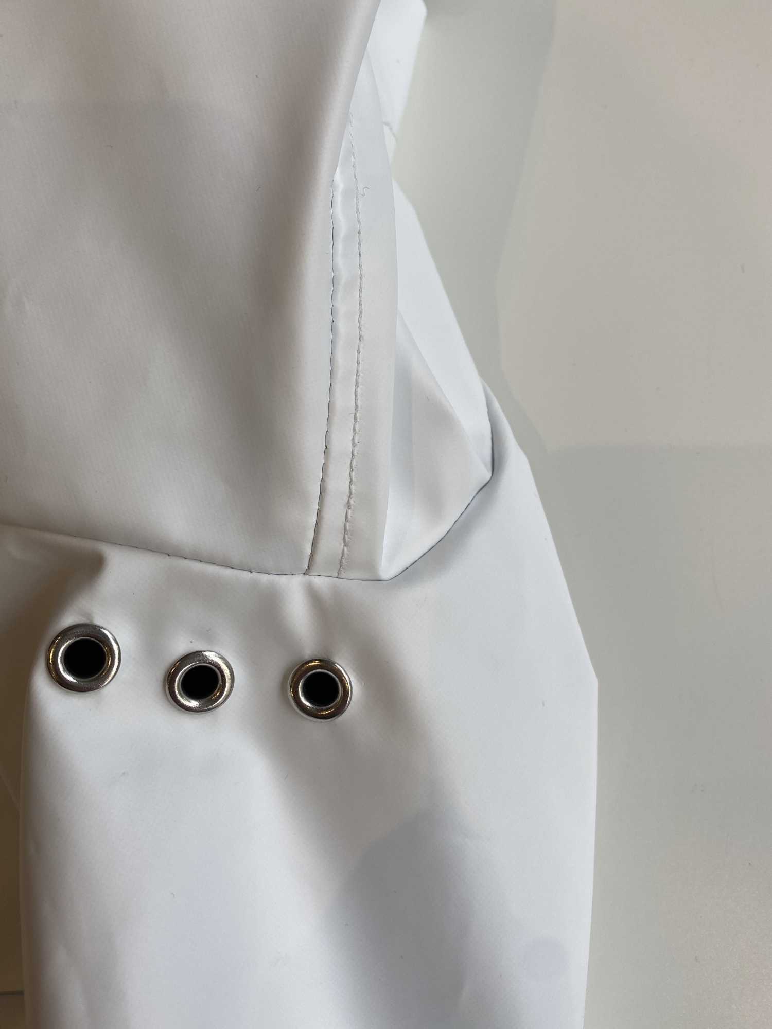 Anneau de rondelle d'oeillet de Morito. Veuillez utiliser un outil d'installation de boutons-pression spécial et une presse. Vous pouvez fixer l'anneau tel quel sans faire de trou et le clouer, mais cela peut ne pas fonctionner selon l'épaisseur du textile, veillez donc à le tester sur le textile que vous utilisez. Si vous rencontrez des difficultés pour bien le fixer, merci de réaliser une rondelle d'oeillet dans le textile avant de fixer l'oeillet.
