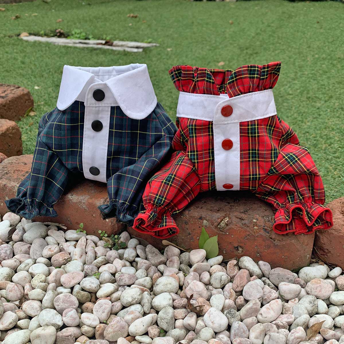 Une fois transformé en vêtement, le motif à carreaux est moins visible, mais dégage toujours une atmosphère calme.