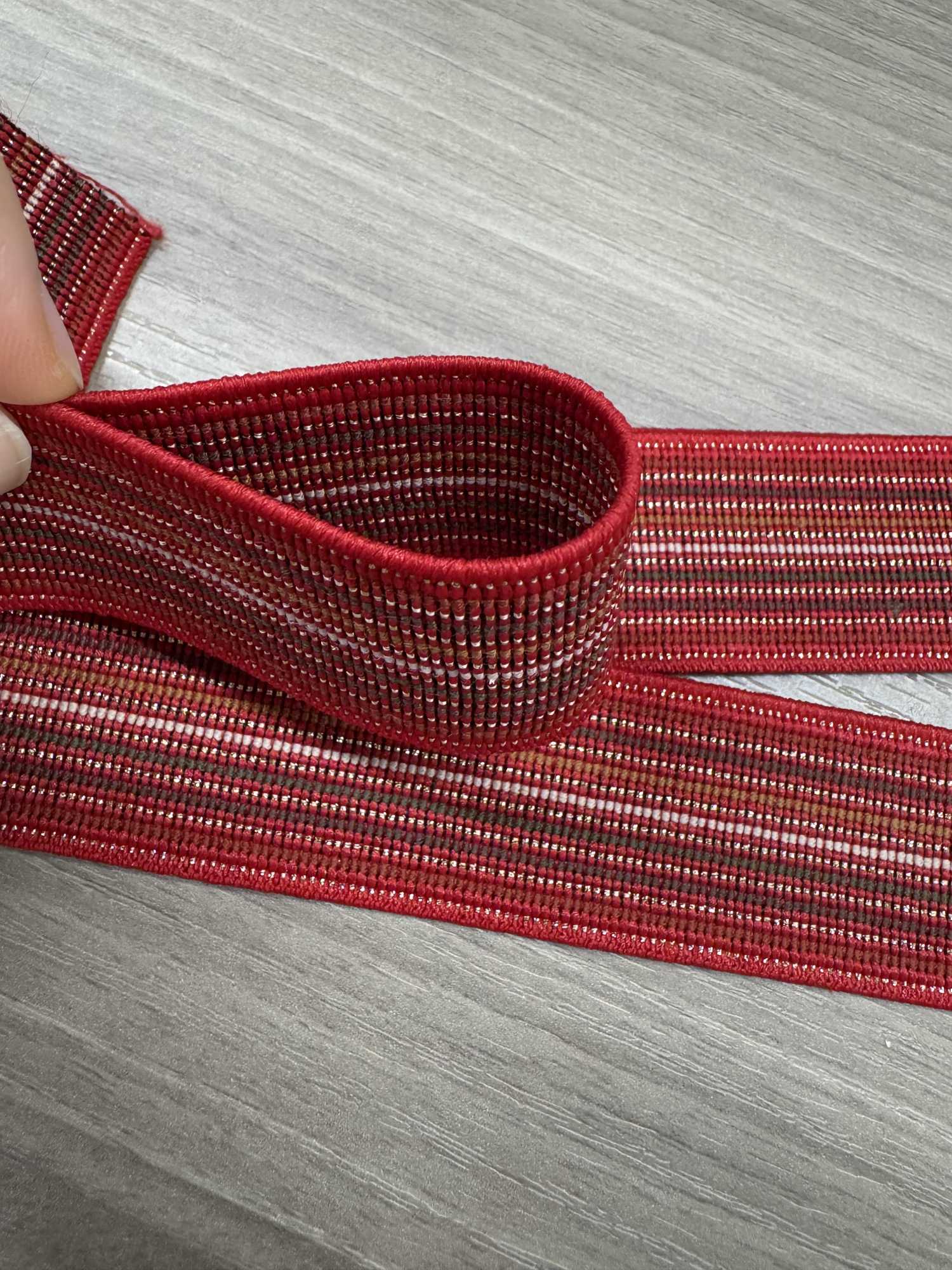 Épaisseur idéale et grande robustesse. Extensible, le ruban reprend sa forme initiale après étirement. La partie dorée est jolie ; je pense qu'il s'accorderait bien avec une décoration de manchette.