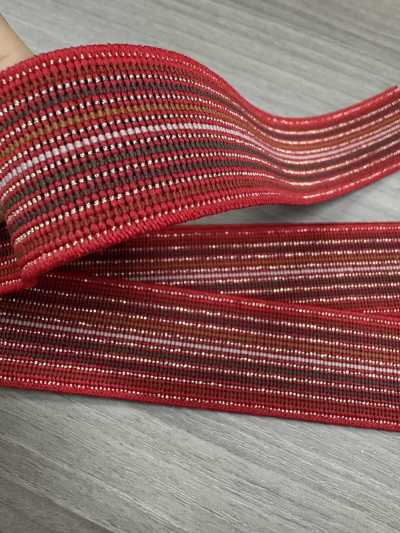Il s'agit d'un ruban extensible et tissé. Le fils à coudre de trame contient de la couleur et des paillettes, ce qui lui donne un motif de bordure coloré et une impression magnifique. Disponible dans une variété de tailles et de couleurs, il peut être utilisé à diverses fins. *Des échantillons de coupe sont disponibles dans des longueurs de 1 à 10 mm (le prix sera doublé). ※1 rouleau = 30 mètres